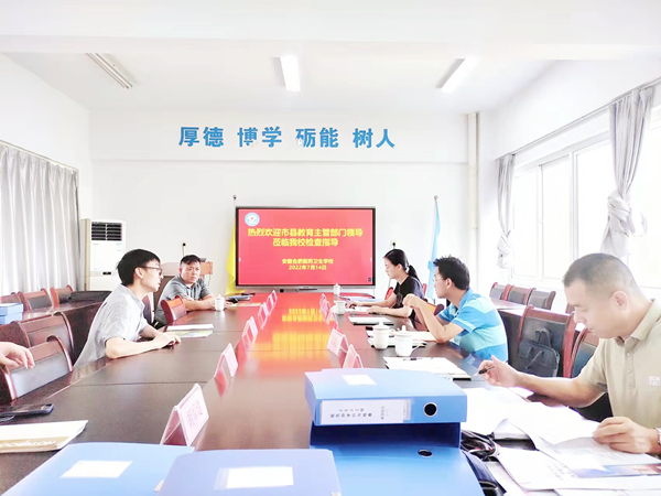 7月14日上午,合肥市教育局職成處處長(zhǎng)陳峰帶領(lǐng)由市教育局、市財(cái)政局相關(guān)專家組成的檢查組在肥東縣教體局職成辦主任韋存和、副主任夏慶明的陪同下蒞臨安徽合肥醫(yī)藥衛(wèi)生學(xué)校檢查指導(dǎo)工作。