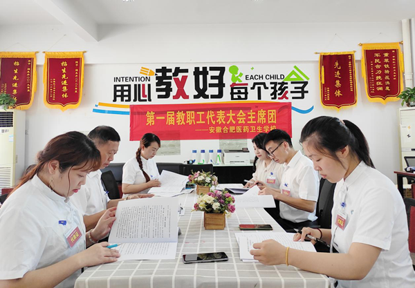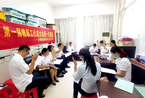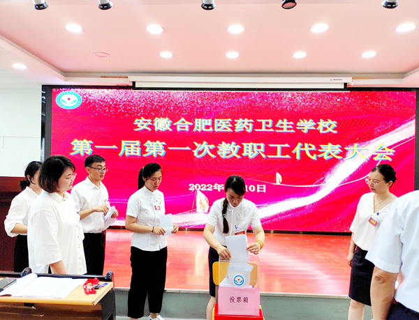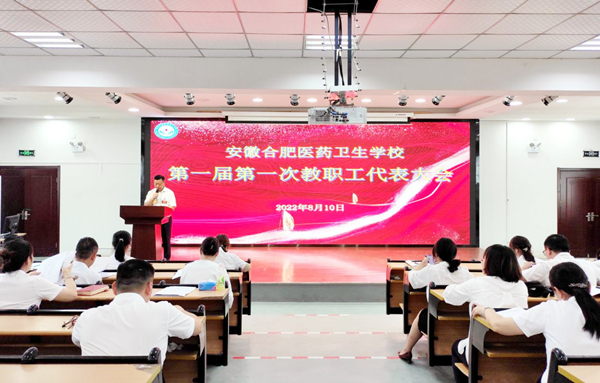 ? ? ? ?為進(jìn)一步推進(jìn)學(xué)校民主建設(shè),加強(qiáng)民主管理,8月10日,安徽合肥醫(yī)藥衛(wèi)生學(xué)校第一屆第一次教職工代表大會在教學(xué)樓多功能廳召開。校領(lǐng)導(dǎo)方勁松、洪梅、胡軍健、徐晶晶出席大會。全體正式代表和特邀代表等參加了此次會議。會議分為兩個階段,第一階段由校長助理徐晶晶主持,第二階段由副校長胡軍健主持。