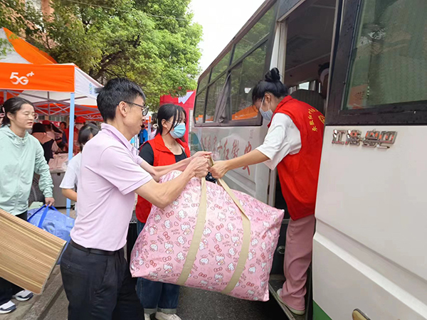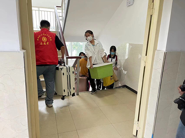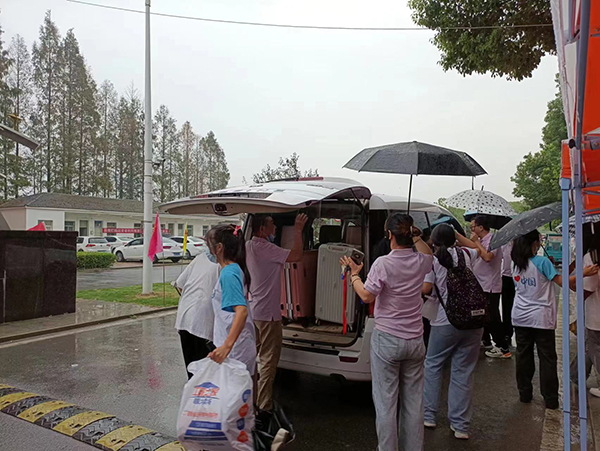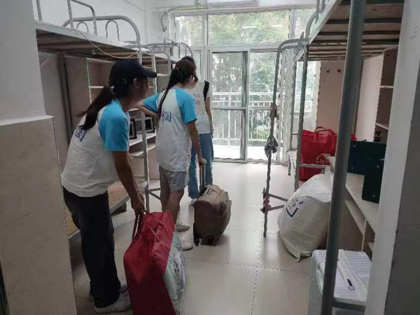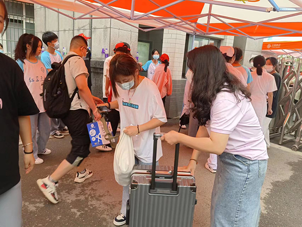 ? ? ? ?上午8時(shí)許,下起了毛毛細(xì)雨,但是絲毫不影響我們志愿者的熱情,因?yàn)橐咔榉揽匦枰?,我們的家長(zhǎng)不能入校,于是學(xué)校安排了志愿者進(jìn)行點(diǎn)對(duì)點(diǎn)服務(wù),2名志愿者服務(wù)1名新生,從新生入校一直到進(jìn)寢室,我們的志愿者全程陪同,切實(shí)讓新生感到暖心,讓家長(zhǎng)感到放心。