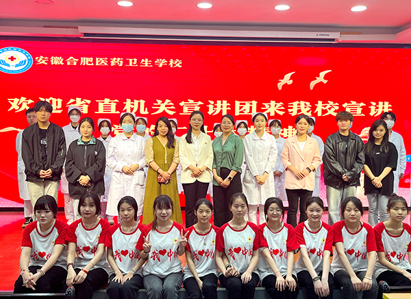 ? ? ? ?為深入學習宣傳貫徹黨的二十大精神,大力弘揚勞模精神、勞動精神、工匠精神,在安徽醫(yī)藥衛(wèi)校2023年職教周活動如火如荼進行之際,安徽省直機關(guān)工委宣講團來校開展黨的二十大精神進支部、進教室宣講活動。此次宣講活動由省直機關(guān)工委講師團成員劉藝老師進行宣講,宣講活動由校團委書記吳曉杰主持。