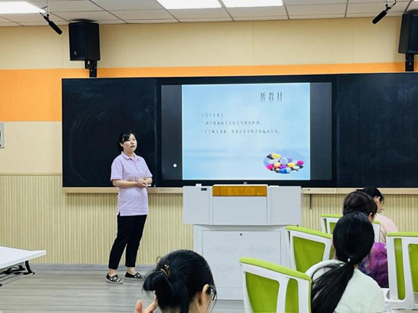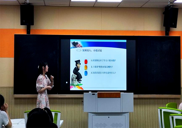 ? ? ? ?說課比賽中,高業(yè)尤老師帶來的《如何測量血壓》,教會學生正確使用高血壓測量儀,掌握舒張壓和收縮壓。李美峰老師從聽、說、讀、寫等角度以及護理與英語的協(xié)調(diào)條性出發(fā),創(chuàng)設(shè)情境,對學生在護理過程中涉及的以英語進行知識性流暢對話進行了培養(yǎng)。汪菊老師帶來《24式太極拳》,以推動中華武術(shù)文化可持續(xù)發(fā)展為目的,深入教學太極拳理論,鍛煉學生職業(yè)體能與一般體能,發(fā)揮人的運動能力,促進學生全面發(fā)展。張冬玲老師的《常用解熱鎮(zhèn)痛抗炎藥的使用》,讓學生了解常用藥,如布洛芬緩釋膠囊、阿司匹林等藥物的藥理作用以及吸收機制。徐慧慧老師以《護理學基礎(chǔ)之口腔護理》為主題,通過具體案例分析,增強了學生口腔護理意識和口腔的正確擦洗順序。祝進老師的《致橡樹》,用細膩的情感深刻解讀這一經(jīng)典詩歌的內(nèi)蘊,通過對學生興趣的培養(yǎng),讓語文學習生動而有趣;讓語文本身知識點點和人文情懷相結(jié)合,培養(yǎng)了學生的綜合實踐能力。