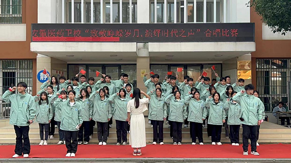 ? ? ? ?熟悉的旋律,奏出青春的華章;飛揚的樂曲,唱響奮斗的時代。為大力弘揚“五四精神”,傳承與發(fā)揚共青團的優(yōu)良傳統(tǒng),堅決落實“立德樹人”根本任務(wù),進一步堅定青年學(xué)生愛黨愛國、愛團榮團的信念,10月11日,安徽合肥醫(yī)藥衛(wèi)生學(xué)校團委在教學(xué)樓門前以“致敬崢嶸歲月,演繹時代之聲”為主題,舉辦合唱比賽。