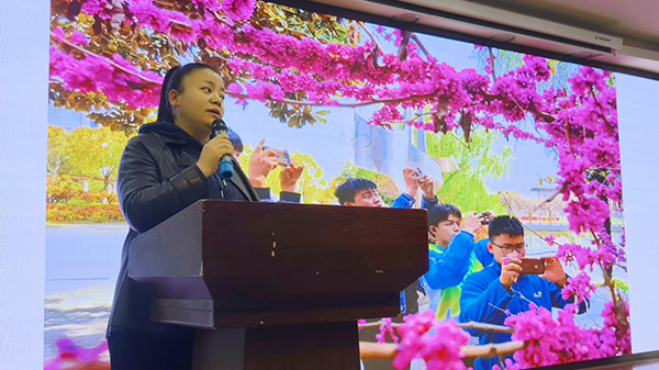 ? ? ? ?本次活動邀請了九三學(xué)社安徽省婦工委委員、合肥市十七屆人大代表、肥東縣攝影家協(xié)會副主席、合肥市通用技術(shù)學(xué)校攝影音樂老師殷瑛以“講座+知識問答”的形式進(jìn)行?;顒蝇F(xiàn)場,殷瑛老師結(jié)合自身學(xué)習(xí)黨的二十大精神實際,以“初心”“善良”“熱愛”闡釋為主線,聯(lián)系該?!俺筷財z影志愿服務(wù)隊”的成長故事,充分運(yùn)用可視化傳播、互動式交流等方法,展示出職業(yè)學(xué)校學(xué)生良好的精神風(fēng)貌,讓現(xiàn)場師生近距離地感受到了志愿服務(wù)活動在我們?nèi)粘I钪械闹匾饬x。