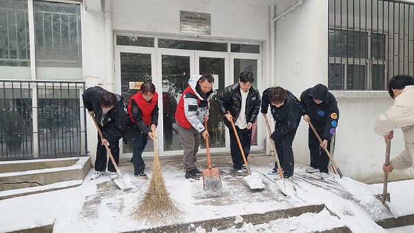 ? ? ? ?“晨起推門雪滿園,雪晴云淡日光寒”,12月18日,合肥的一場大雪如約而至,紛紛揚揚的雪花裝扮了整個校園。在盡情享受雪景的同時,厚厚的積雪也給師生們通行帶來諸多不便,埋下了安全隱患。在學(xué)校領(lǐng)導(dǎo)們的帶頭參與和倡議下,安徽合肥醫(yī)藥衛(wèi)生學(xué)校黨總支積極組織全校黨員和師生志愿者們開展清理積雪保障校園安全志愿服務(wù)活動,確保師生安全通行。