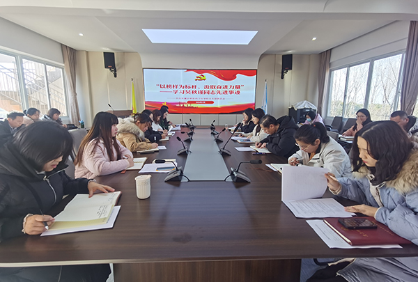 ? ? ? ?學習會上,校黨總支副書記徐晶晶講述了新時代共產黨員的模范榜樣吳秋瑾同志的先進事跡以及她牢記黨的宗旨、忠誠黨的事業(yè)的先進事跡。全校黨員認真觀看了《“忠誠的力量”——一級英模吳秋瑾 一路芳華映初心》等視頻短片,深入了解了吳秋瑾同志的感人事跡和崇高精神,一同回顧了她立足平凡崗位敬業(yè)奉獻的奮斗歷程。