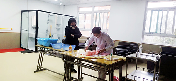 ? ? ? ?實習生選拔結(jié)束后,陳文瑤主任一行在校領(lǐng)導的陪同下,實地參觀了學校省級護理示范實訓基地的智慧康復實訓室及智慧老年照護實訓室。