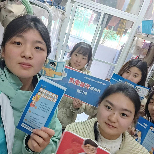 ? ? ? ?“一見“寢”心,“咔嚓”記錄”。志愿服務(wù)隊伍走進(jìn)學(xué)生寢室,以“宣傳肺結(jié)核防治知識,守護(hù)健康校園”為主題,向在校學(xué)生發(fā)放宣傳折頁并進(jìn)行有關(guān)預(yù)防肺結(jié)核宣傳知識的科普與講解。“同學(xué)你好,這是結(jié)核病防止核心信息及知識要點小冊子……”,從結(jié)核病的起因、危害、傳播途徑、預(yù)防措施和治療措施,由淺至深,并結(jié)合真實的病例情況帶入,用清晰易懂的語言來幫助同學(xué)們深入了解結(jié)核病。
