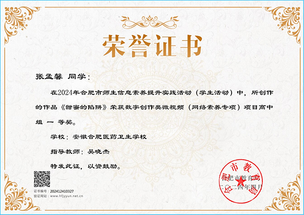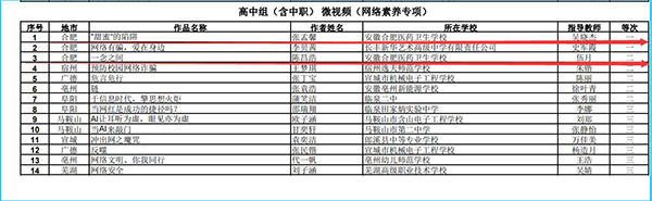 ? ? ? ?2024年,安徽醫(yī)藥衛(wèi)校推選9件作品參加合肥市師生信息素養(yǎng)活動評比,榮獲3個一等獎、2個二等獎、3個三等獎。在安徽省師生信息素養(yǎng)活動評比中,榮獲1個一等獎和1個二等獎。