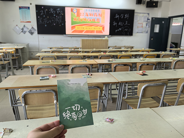 ? ? ? ?一張張干凈的桌凳、一排排整齊的柜子、一個(gè)個(gè)精美的小禮物……還有班主任們提前設(shè)計(jì)和繪制的黑板報(bào),也為孩子們的到來(lái)做好了充分的準(zhǔn)備。為了讓開(kāi)學(xué)多一份驚喜和期待,有的班主任還在同學(xué)們的桌子上留了一份小禮物?;蚴强煽蓯?ài)愛(ài)的千紙鶴;或是元?dú)鉂M滿的向日葵;或是甜甜蜜蜜的糖果……禮物雖小,卻蘊(yùn)含著老師的一份心意,讓同學(xué)們一進(jìn)教室就感受到滿滿的開(kāi)學(xué)儀式感。
