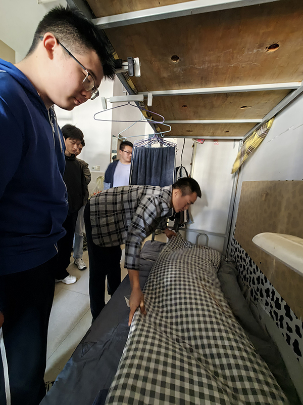 ? ? ? ?生活老師深入每個學(xué)生宿舍,對宿舍衛(wèi)生、用電安全、消防設(shè)施等方面進(jìn)行了詳盡的檢查。檢查途中發(fā)現(xiàn)大部分宿舍整體干凈整潔、床鋪上物品及其他生活用品擺放整齊,并且無大功率違規(guī)電器,宿舍通風(fēng)也做得很好。但仍有部分宿舍出現(xiàn)衛(wèi)生死角、垃圾清理不及時等現(xiàn)象。生活老師針對床鋪應(yīng)如何整理、桌面物品如何擺放、衛(wèi)生如何持久保持等方面,進(jìn)行了一次全方位的指導(dǎo),強(qiáng)調(diào)了物品擺放的有序性和整潔度。在老師手把手地指導(dǎo)下,同學(xué)們紛紛動手實(shí)踐,做好每一個細(xì)節(jié),努力將宿舍整理得井井有條。