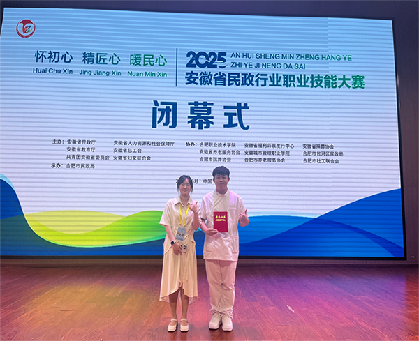2025年6月27日至30日,由安徽省民政廳、安徽省人力資源和社會(huì)保障廳、安徽省教育廳、安徽省總工會(huì)、共青團(tuán)安徽省委員會(huì)、安徽省婦女聯(lián)合會(huì)六部門(mén)主辦的安徽省民政行業(yè)職業(yè)技能大賽在合肥職業(yè)技術(shù)學(xué)院舉辦,安徽合肥醫(yī)藥衛(wèi)生學(xué)校學(xué)生李圓浩、劉語(yǔ)嫣在競(jìng)爭(zhēng)激烈的養(yǎng)老照護(hù)員(學(xué)生組)賽項(xiàng)中表現(xiàn)卓越,李圓浩同學(xué)勇奪學(xué)生組第六名,并獲優(yōu)勝獎(jiǎng)。