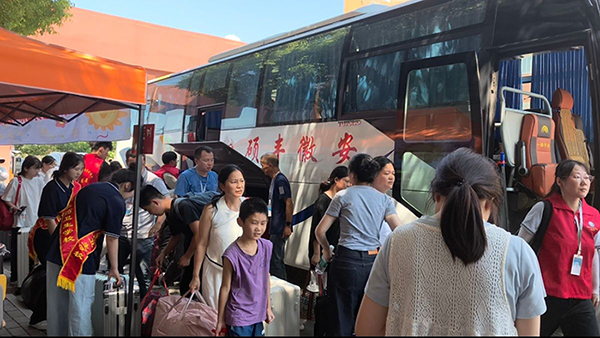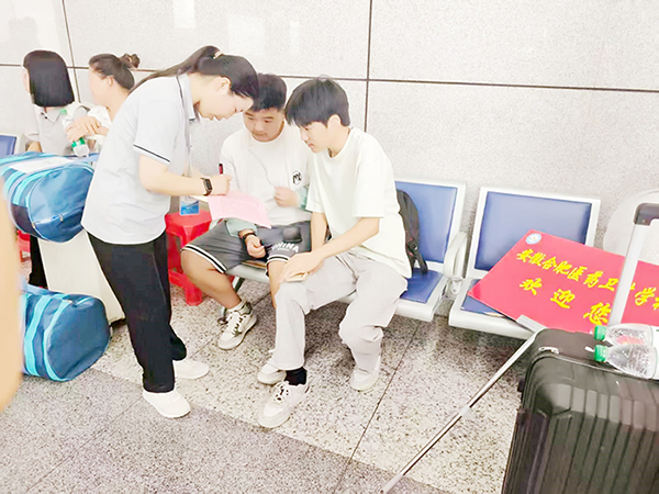 清晨,學(xué)校的接站車隊(duì)已整裝待發(fā)。高鐵南站、汽車站的出站口處,舉著“歡迎新同學(xué)”標(biāo)牌的老師們和志愿者們?cè)缫丫臀唬t色的引導(dǎo)旗在晨風(fēng)中輕輕搖曳,像一簇簇跳動(dòng)的火焰,溫暖著每一位遠(yuǎn)道而來的學(xué)子與家長(zhǎng)的心?!巴瑢W(xué)這邊走,行李我來幫你拿!” 志愿者們熱情的招呼聲此起彼伏,接過沉重的行囊,也接過了家庭的期盼與囑托。