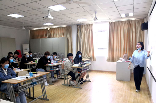 在課堂上,學(xué)生自覺地戴口罩專心聽講,所謂“課堂是學(xué)生智慧與快樂的發(fā)源地,也是老師教學(xué)的生命力之所在”。