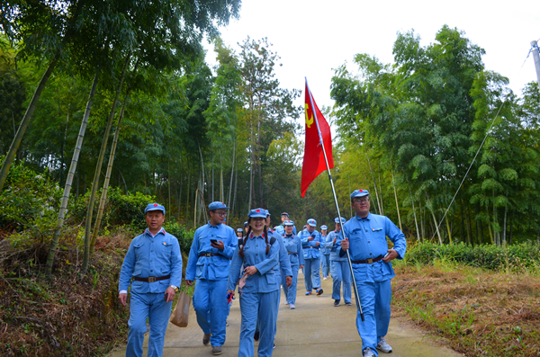 ? ? ? ?本次紅色革命教育活動主要由重走紅軍路、緬懷革命先烈和拓展學(xué)習(xí)幾部分構(gòu)成。全體人員身著紅軍裝,頭戴紅軍帽,懷著崇敬的心情,重走紅軍路,踏尋當(dāng)年紅軍艱難崎嶇的革命足跡,深刻感懷不忘初心、牢記使命的責(zé)任;在暴動舊址傾聽革命故事,緬懷革命先烈;在崎嶇的山間體驗(yàn)紅軍當(dāng)時(shí)穿越叢林的艱難險(xiǎn)阻,更加體會到今天生活的來之不易,是凝聚著無數(shù)先烈的英勇無畏和無私奉獻(xiàn)。