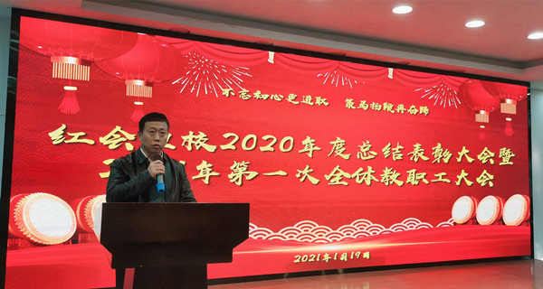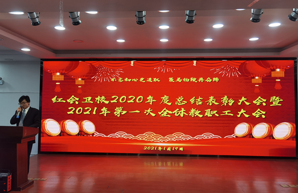 ? ? ? ?為全面的總結(jié)過去,更好的謀劃未來,1月19日下午,學(xué)校在教學(xué)樓一樓多功能廳隆重召開2020年度總結(jié)表彰大會暨2021年第一次全體教職工大會。校黨總支書記方勁松、校長洪梅、校長助理徐晶晶及全體教職工參加大會,會議由副校長胡軍健主持。