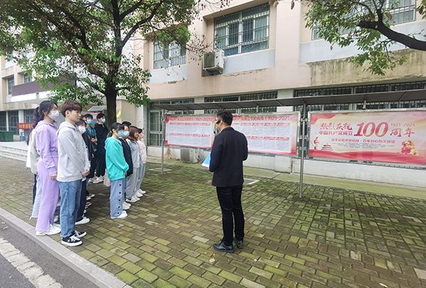 ?????? 首場宣講活動面向18級高職1班,全體同學駐足校園宣傳欄旁,認真聆聽宣講,通過學習黨史、新中國史、改革開放史、社會主義發(fā)展史等知識,汲取前進的智慧和力量,做到學史明理、學史增信、學史崇德、學史力行。