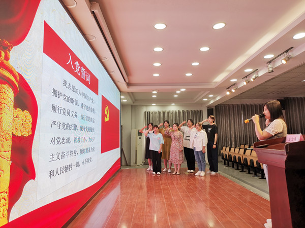 ? ? ? ?值中國共產(chǎn)黨成立100周年即將到來之際,6月11日,安徽紅十字會衛(wèi)生學(xué)校在校一樓多功能廳組織召開2021年黨員宣誓大會,扎實推進我校黨史學(xué)習(xí)教育,繼承和發(fā)揚黨的優(yōu)秀傳統(tǒng)和優(yōu)良作風(fēng),教育引導(dǎo)預(yù)備黨員不忘初心,牢記使命。校黨總支書記方勁松、校黨總支班子成員、各黨支部書記出席會議。全校黨員師生、入黨積極分子、入黨申請人參加會議。