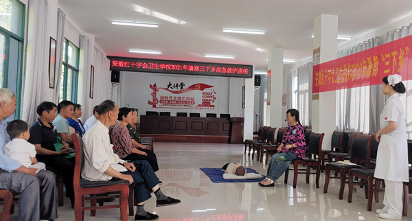 ? ? ? ?7月20日,紅會衛(wèi)校“美小護(hù)”應(yīng)急救護(hù)志愿服務(wù)隊在金寨縣千坪村村委會的指導(dǎo)幫助下,順利開展應(yīng)急救護(hù)知識普及和美育班社會實踐活動,千坪村第一駐村書記凌志軍、千坪村黨支部書記、村委會主任李磊和部分村民代表參加本次社會實踐活動。此外,本次應(yīng)急救護(hù)知識普及和美育班的實踐活動開展也是紅會衛(wèi)?!凹t十字精神在衛(wèi)生類中職學(xué)校德育工作中的實踐研究”課題組在進(jìn)行課題具體內(nèi)容實踐的一部分,課題組將通過實踐進(jìn)一步加強(qiáng)課題調(diào)研論證。