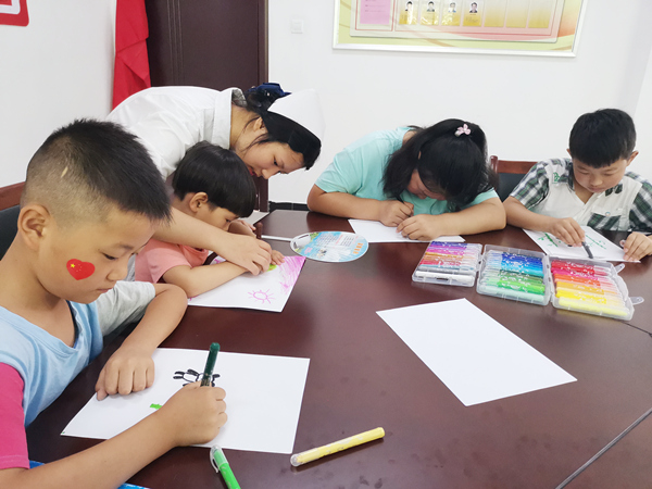 ? ? ? ?美育班由志愿服務(wù)隊指導(dǎo)教師汪雙春主講,當(dāng)?shù)厥钇谠诩业膬和径紖⒓恿嗣烙?。紅會衛(wèi)校志愿服務(wù)隊為孩子們提供了畫筆、畫紙等材料,手把手教學(xué),為孩子們普及繪畫基本知識,引導(dǎo)孩子們樹立藝術(shù)思維,培養(yǎng)興趣,不斷激發(fā)孩子們的藝術(shù)才能。