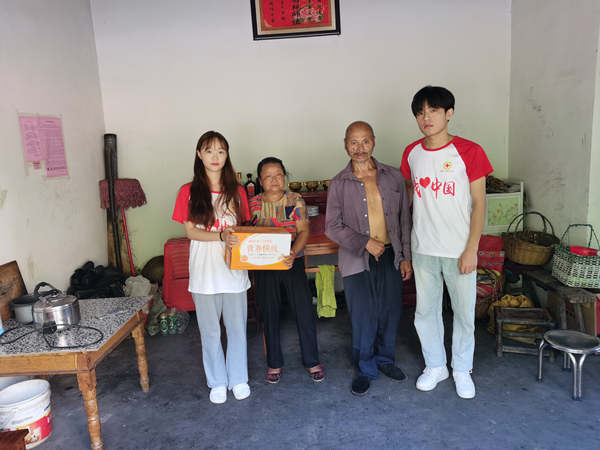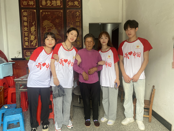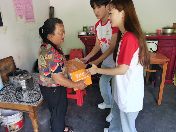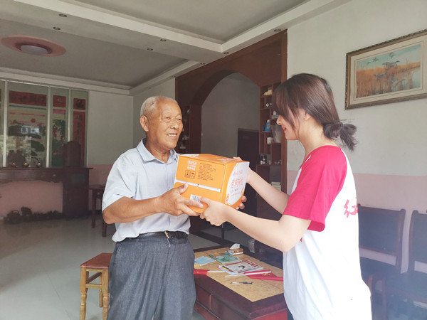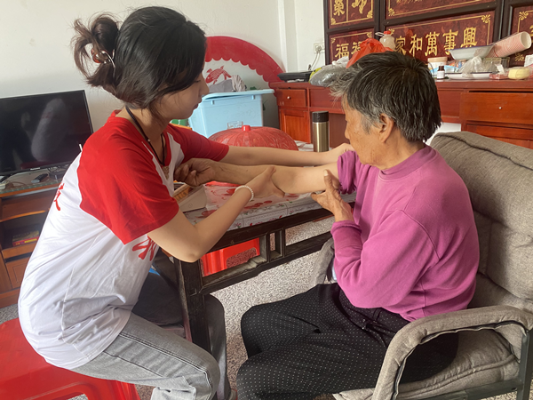 ? ? ? ?時(shí)值晌午,伏天里的太陽(yáng)炙烤著水泥馬路,四面圍山的千坪村沒(méi)有一絲涼風(fēng)。在孤寡老人家中,隊(duì)員們與老人聊天談心,幫助他們測(cè)量血壓,為他們送去慰問(wèn)品?!懊佬∽o(hù)”握著孤寡老人的手,與他們面對(duì)面對(duì)面,心貼心,了解他們的身體情況和心理情況,幫他們做家務(wù),干農(nóng)活,并結(jié)合自身所學(xué)的專業(yè)知識(shí),普及健康常識(shí),叮囑老人注意飲食起居,提供美小護(hù)們力所能及的幫助。老人們因“美小護(hù)”的到來(lái)感到溫暖與快樂(lè)。