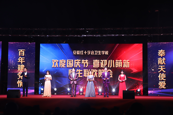 ? ? ? ?皓月當(dāng)空正是爽朗秋日,好友相聚共度佳節(jié)良宵,在建黨百年和祖國(guó)母親72歲華誕之際,為表達(dá)歡悅喜慶的氛圍,同時(shí)也表達(dá)對(duì)學(xué)校2021級(jí)全體新生的歡迎,9月29日晚,在做好疫情防控工作的前提下,紅會(huì)衛(wèi)校在學(xué)校籃球場(chǎng)隆重舉辦“百年建黨情,奉獻(xiàn)天使愛(ài)”慶國(guó)慶迎新生師生主題聯(lián)歡晚會(huì)。應(yīng)邀嘉賓及學(xué)校全體師生共同觀看了迎新晚會(huì),此外,晚會(huì)還通過(guò)騰訊、抖音等線上平臺(tái)進(jìn)行直播。