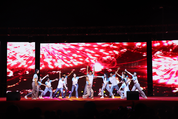 ? ? ? ?在百年華章篇章,情景舞蹈《輝煌中國(guó)》更是體現(xiàn)出在建黨百年和祖國(guó)母親生日來(lái)臨之際對(duì)黨和祖國(guó)的贊美,表達(dá)出作為一名中國(guó)人的自豪之情。合唱朗誦《百年大先生》更是以創(chuàng)新的方式,洋溢出對(duì)祖國(guó)的贊美之情。中國(guó)舞《大魚(yú)海棠》將全場(chǎng)觀眾帶入一種歡快、輕松的氛圍,給人一種意猶未盡的感覺(jué)。壓軸節(jié)目T臺(tái)秀&教師舞蹈《漫步紅衛(wèi)路》由學(xué)生和2021級(jí)班主任共同完成,教師一登臺(tái),直接再次點(diǎn)燃全場(chǎng)氣氛,在場(chǎng)新生雀躍歡呼,充分體現(xiàn)了師生間的團(tuán)結(jié)友愛(ài),也表現(xiàn)出紅衛(wèi)學(xué)子的青春熱血,晚會(huì)就在這令人興奮地舞蹈中落下帷幕,節(jié)目表演完后,所有演職人員合影留戀。
