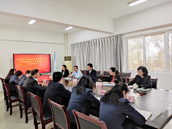 ? ? ? ?11月2日上午,安徽醫(yī)學高等??茖W校黨委副書記、校長鄭為超,黨委委員、副校長王勁松率學校相關處室部門負責人一行蒞臨紅會衛(wèi)校調研指導。校黨總支書記方勁松、校長洪梅、副校長胡軍健攜相關部門負責人陪同調研。